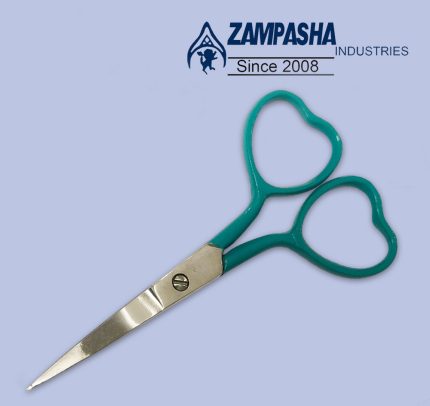 3.5 inches darling heart shaped embroidery scissors with Teal color powder coating on the handles, blades length 3.5cm